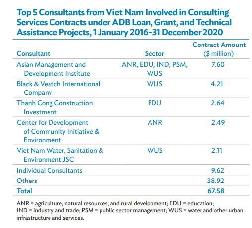 Every year, the ranking of the top consulting firms in Vietnam is published on the Vietnam National Newsletter assessed by ADB based on the total value of awarded consulting contracts. Accordingly, from January 1, 2016 to the end of December 31, 2020, the total value of contracts awarded by ADB to AMDI is 7.60 million USD for 04 project groups on Agriculture and natural resources. and rural development; Education; Industry & Commerce and Public Sector Management, this ranking helps AMDI maintain its leading position among ADB consulting firms in Vietnam.